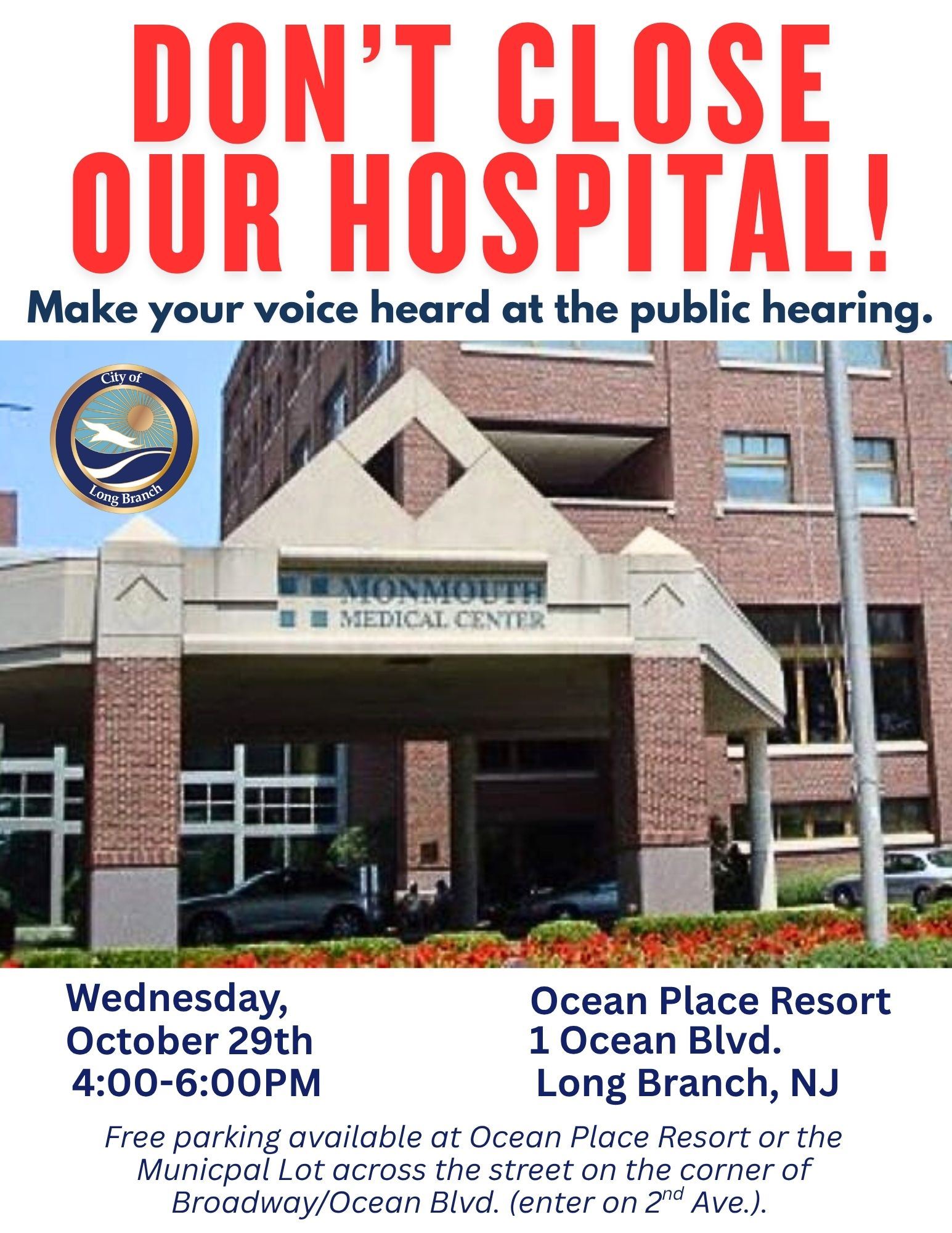 LONG BRANCH, N.J. – Congressman Frank Pallone, Jr. (NJ-06) is calling on residents to attend the October 29 public hearing on RWJBarnabas Health’s plan to move Monmouth Medical Center’s hospital license and core services out of Long Branch.
